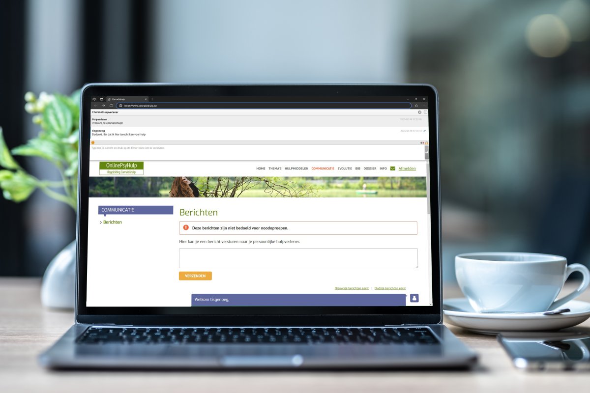 24/7 toegankelijk. Kosteloos en anoniem. Je kan wekelijks overleggen met je persoonlijke hulpverlener via (beveiligde) chat.